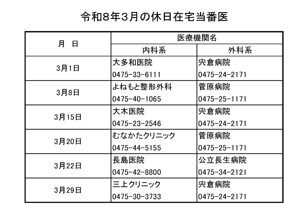 2026年3月休日当番
